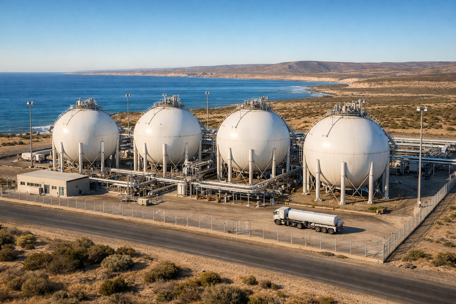 La planta forma parte de un esquema integral que incluye gasoducto dedicado, poliducto y buques de licuefacción. Pero es la instalación en tierra la que consolida el salto productivo: transforma al Golfo San Matías en un polo industrial y no solo en una salida marítima.