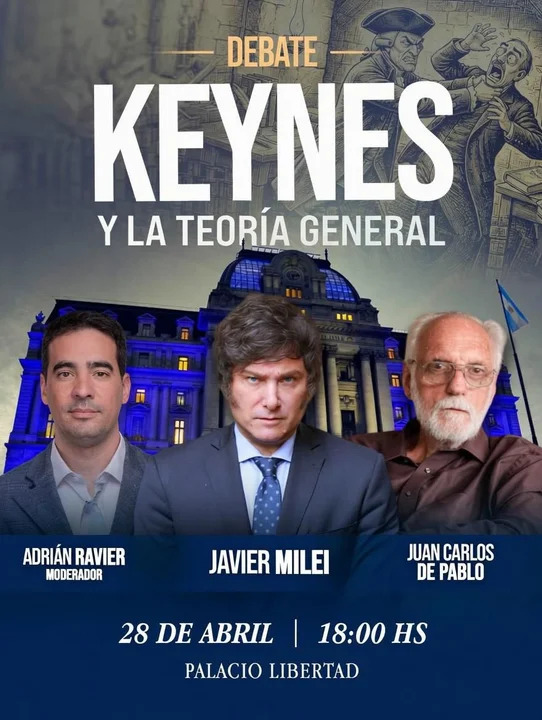 Para el martes 28, Milei confirmó su participación en la disertación en el ex CCK, a las 18hs, en un debate titulado ‘Keynes y la Teoría General’, junto al economista Juan Carlos de Pablo y al diputado nacional por La Libertad Avanza (LLA) Adrián Ravier.